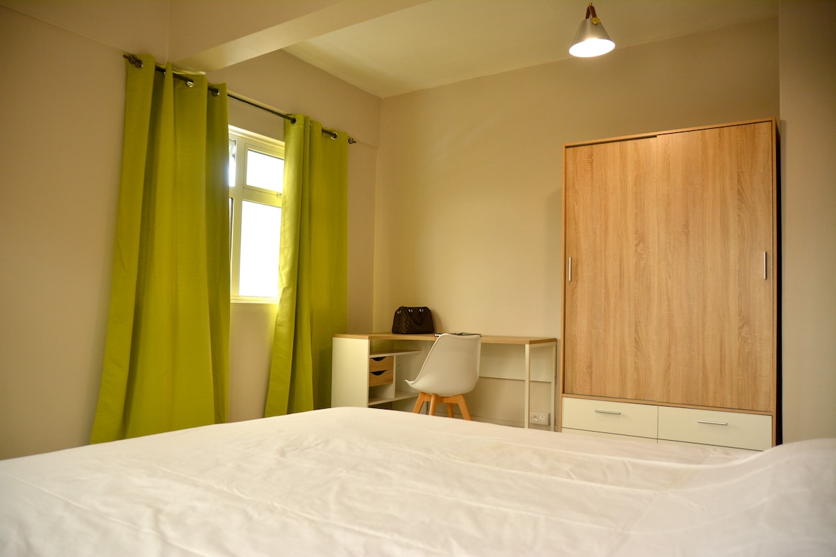 A big clean double room with wardrobe. The room has a fan or you can open the window if you are too hot. You have access to hair dryer, iron and iron board. The door has a key lock that you can use for your safety. Please note the bathroom is shared and not a private one.