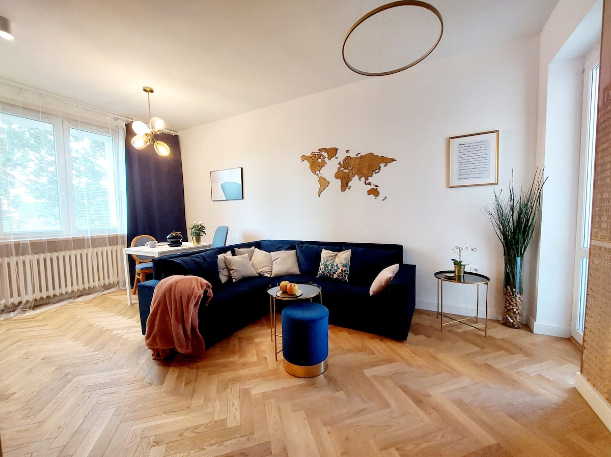 The apartment is located on the first floor with an elevator. It consists of a living room with a kitchenette and, 2 bedrooms (one is a connecting room), bathroom and cozy balcony. Nearby, you'll find a metro station (500 meters away), the Old Town (5 minutes by tram or a 20-minute walk across the bridge), the ZOO, the National Stadium, a beach, Lidl, antique shops, galleries, and restaurants. The district is very well connected to other parts of Warsaw - an ideal base for exploring.