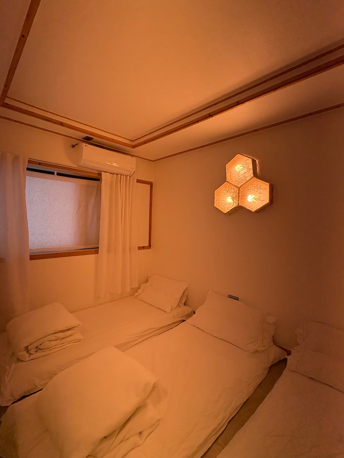 2인 기준 독채 한옥입니다. 이부자리가 깨끗하고 정갈하게 준비된 공간입니다. 방 3개, 화장실 3개, 거실과 부엌, 그리고 마당이 마련되어 있어 여유롭고 편안하게 머무실 수 있습니다. 무료 주차도 가능합니다. 창문 사이로 나무가 보이는 풍경이 있어 방 안에서도 자연의 기운을 느끼실 수 있습니다. 각 방마다 화장실이 있어 더욱 편리합니다. 아늑하고 조용한 분위기 속에서 편안한 휴식을 즐겨보세요. 도보 10분 이내에 유명 관광지와 맛집, 감성 카페가 모여 있어 걸어서 여행하기 좋은 위치에 자리하고 있습니다 :)