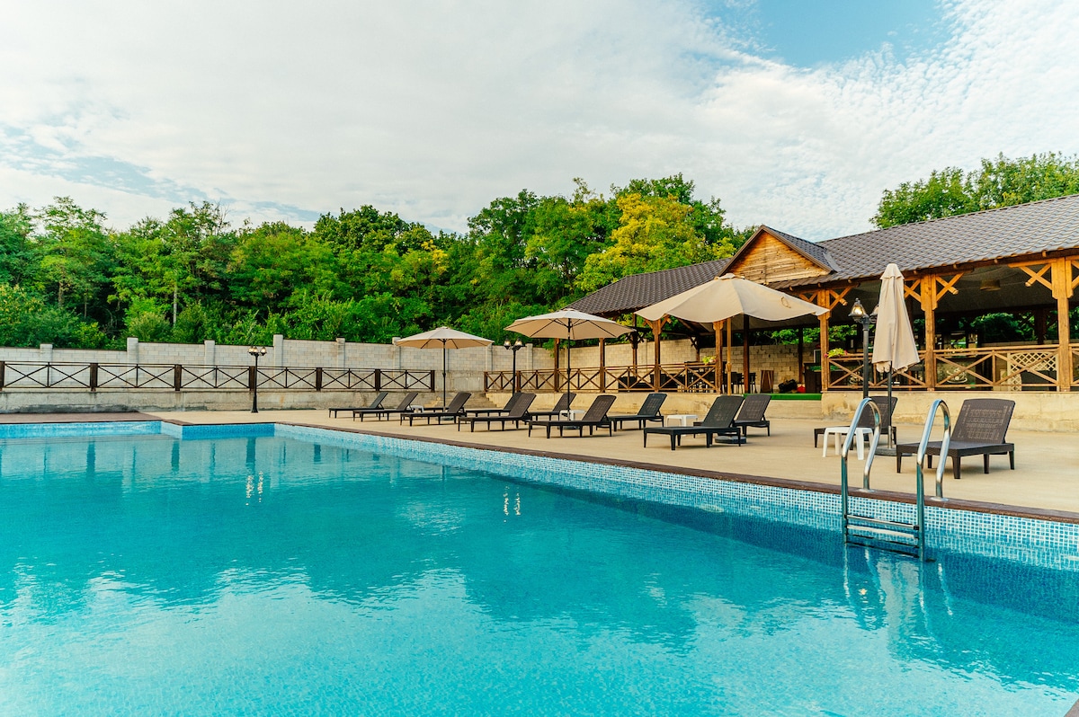 Наш комплекс расположен 20 минутах езды от города Тирасполь, в живописном тихом уголке, недалеко от р.Днестр. На территории есть уникальный музей спиртных напитков.В шести великолепно оформленных залах размещено свыше 10 тысяч видов бутылок различных спиртных напитков из разных стран мира. (Посещение музея,за отдельную плату)