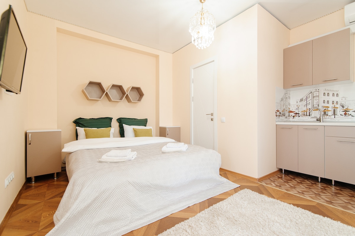 Кухня и бытовая техника: - Полностью оборудованная мини-кухня - Холодильник - Микроволновая печь - Чайник Комфорт и развлечения: - Телевизор - Кондиционер - Собственная ванная комната - Бесплатный Wi-Fi на всей территории - Частная парковка DreamHotel предлагает комфортное размещение в самом центре культурной жизни Кишинёва, сочетая удобство расположения с полным набором современных удобств для комфортного проживания.