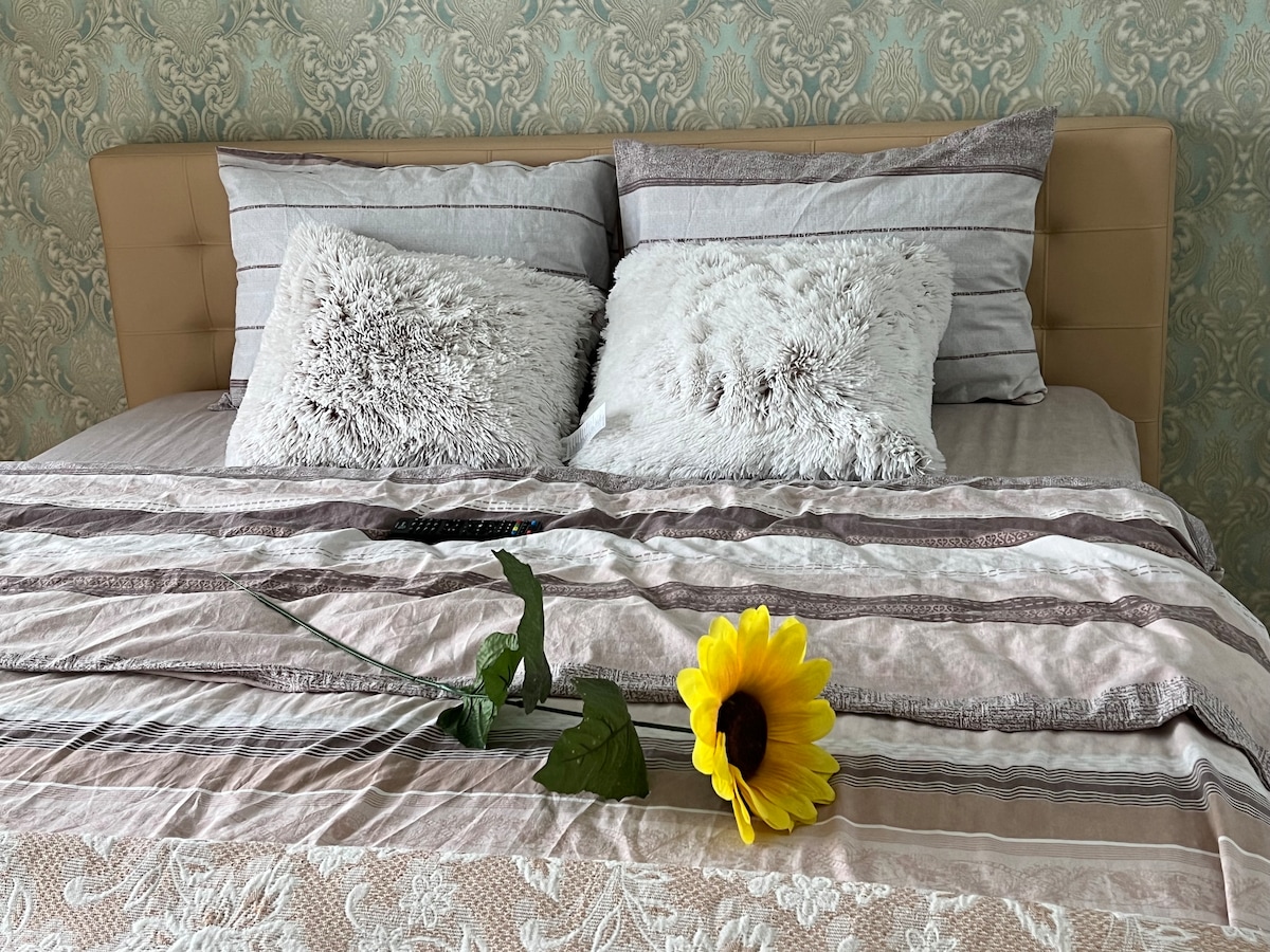 Dear guests and travelers, I'm offering to your attention a recently built house located in the heart of Chisinau, near the famous Radisson Blu hotel and The Central Park. The 2 floored house offers enough space for a pleasant stay, being able to host maximum 5 persons. In the house you will find 2 separate bedrooms, a well equiped kitchen, 2 bathrooms, a balcony for smokers, fast internet conexion and a parking space. The house is perfect for relaxation,but also for business trips.