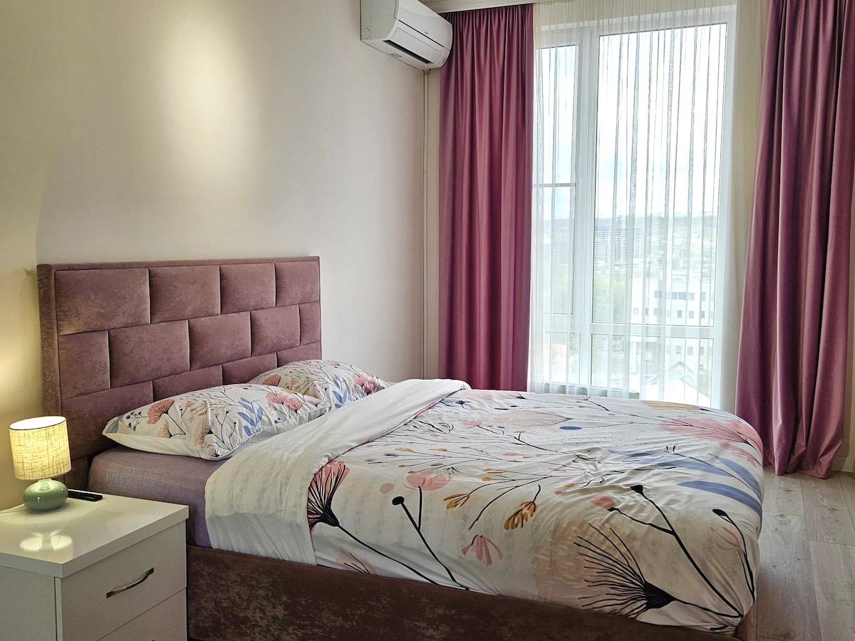 This apartment is the ideal base for your stay in Chișinău, offering a space that’s both comfortable and inviting. With a fresh, modern design, each room is crafted to help you feel at home, whether you're here for a weekend getaway, a family trip, or business. The layout is flexible, making it easy to relax or get things done, and just steps away from the best the city has to offer. Whether you're unwinding or exploring, you’ll have everything you need for an effortless stay.
