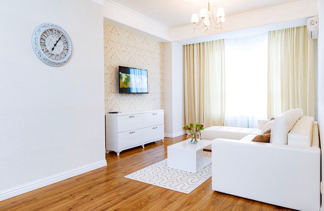 Your family will be close to everything when you stay at this centrally-located place. The spacious apartment has 2 separated bedrooms, each one with a balcony, a spacious kitchen equipped with everything needed, a living room with an extensible sofa, and a big bathroom. The apartment is located in a new building on the 1 st floor and has 2 separate entrances. There is a big playground and a football field in the yard. There is a supermarket & a sport club with swimming pool in the block.