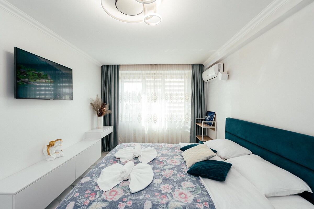 Welcome to our modern 2BD FLAT with terrace, and 2 bathrooms that offer beautiful city views.Contemporary decor and stylish interiors by a designer.Located near major attractions, just a 25-minute walk from the Main Street.Situated by the renovated park "Avgan Park".Enjoy a perfect home during your visit to Capital, Moldova's biggest city.Ideal for business, families or leisure travelers. Enjoy the best of Moldova's capital city in our sleek and inviting space.