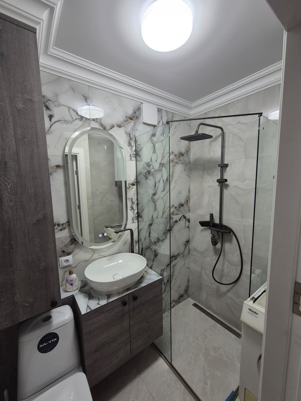 Панорамный вид из окна . В квартире выполнен дизайнерский ремонт. Планировкой предусмотрено: спальня, просторная гостиная- кухня, 1 сан.узел, терраса. Встроенная кухня оснащена всей необходимой бытовой техникой. Много зон для хранения вещей. Охраняемая закрытая территория с собственным мини парком, многоуровневый паркинг, частный детский сад и фитнесс клуб со спа-зоной. спортивные площадки на территории. В шаговой доступности Macdonalds,KFC,Kaufland,OASIS MALL и многое другое.