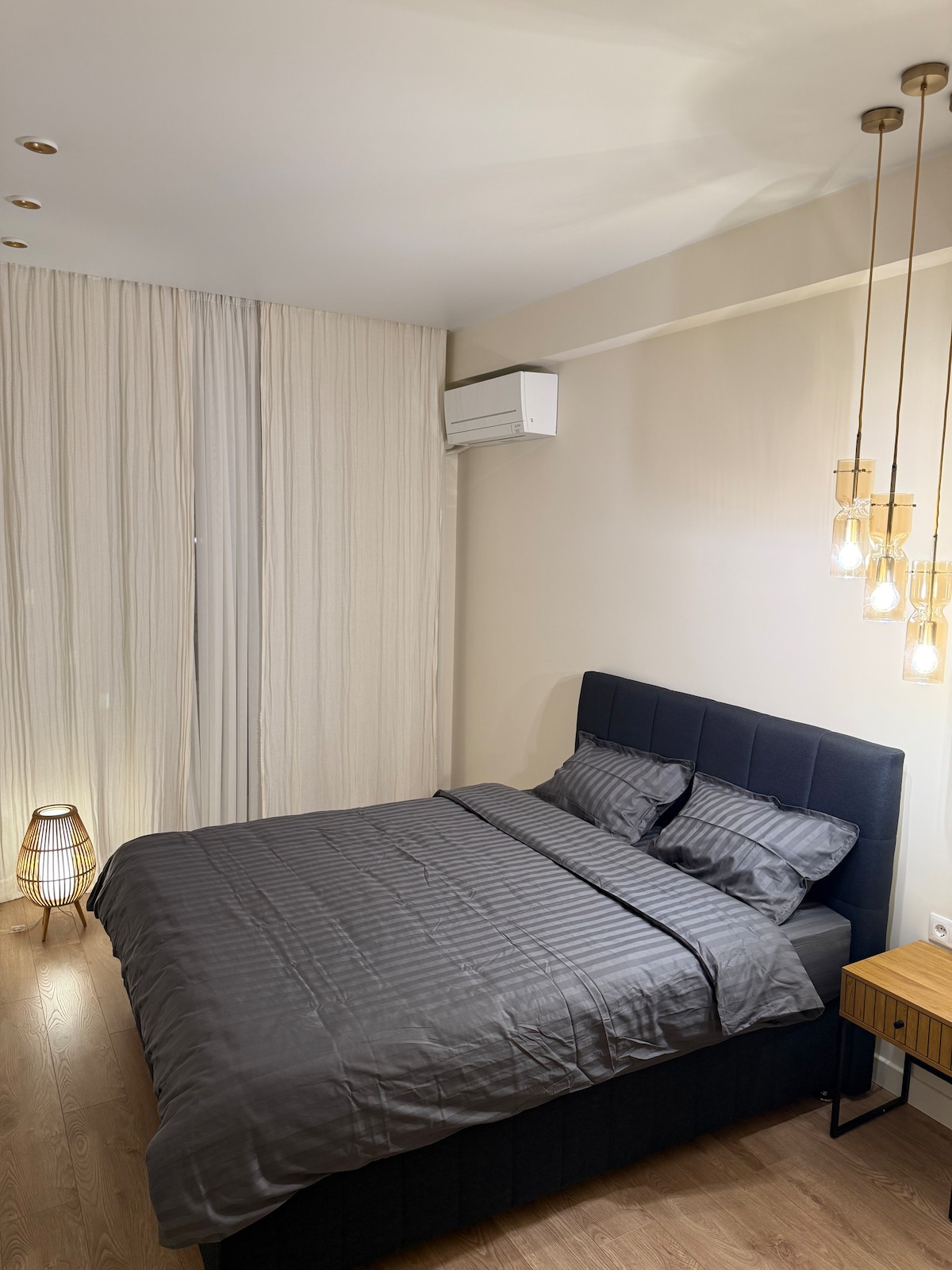 Удобная (новая) , светлая квартира , она полностью укомплектована (кондиционеры, стиральная машина , посудомоечная машина, кофе машина, тостер, белье , полотенца, посуда … автономное отопление, теплый пол. Также имеется отдельная гардеробная. Две комнаты раздельные. Вся инфраструктура в шаговой доступности. Панорамный вид из окон. Особенный вид открывается на ночной город, весь город как на ладони.