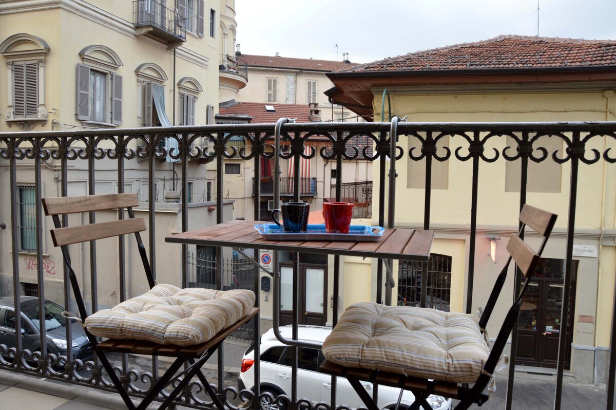 L'appartamento elegantemente restaurato, si trova in via Giuseppe Verdi nel cuore del centro storico della città, a 100 metri dal simbolo di Torino "La Mole Antonelliana" e affianco all'Università di Lettere. L'abitazione è molto facile da raggiungere in macchina o in treno e pur essendo in centro è estremamente tranquilla e silenziosa perchè si sviluppa all'interno di un'antica corte di fine secolo 1700.