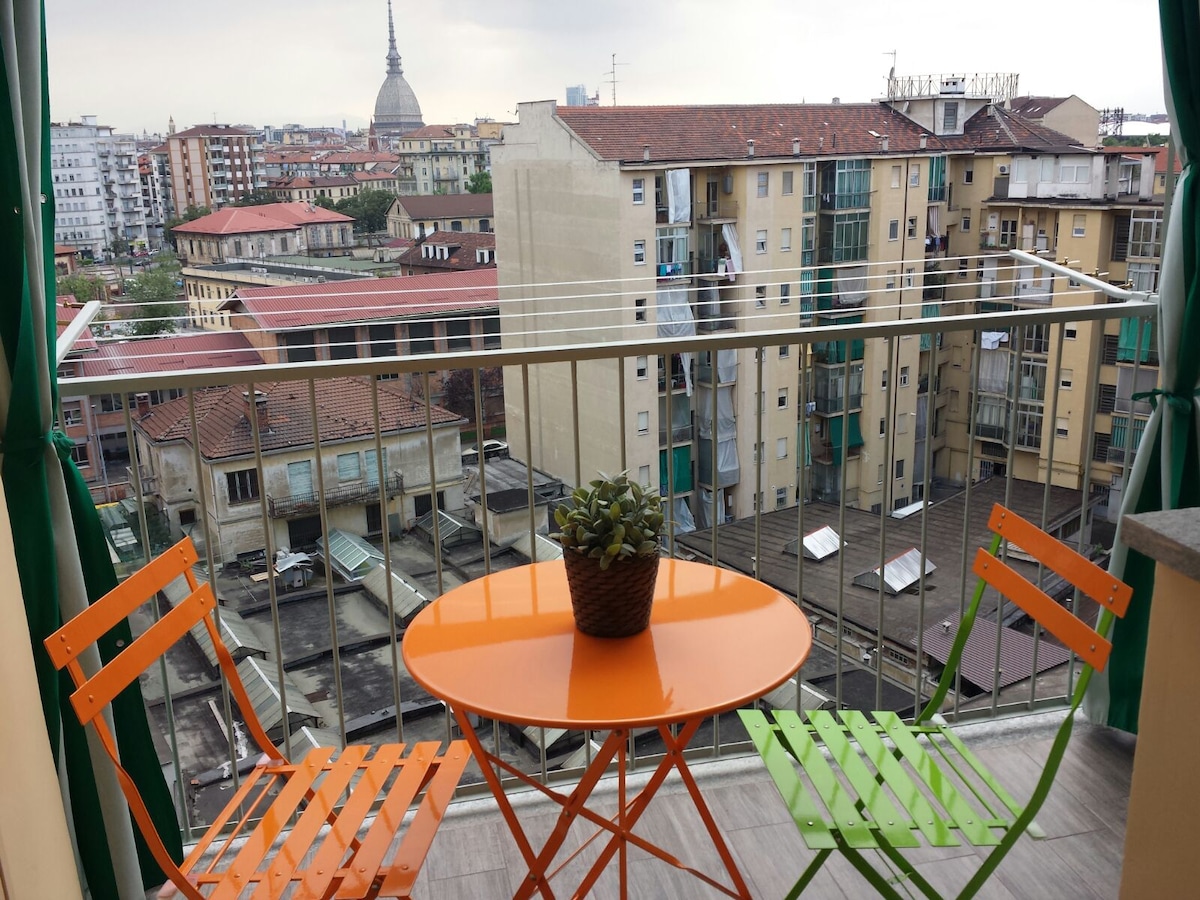 Nuovissimo, con bagno, angolo cottura e un’enorme terrazza attrezzata. Potrete sorseggiare un bicchiere di vino ammirando la Mole Antonelliana (che la sera, illuminata, toglie il fiato), la collina, il monastero dei Cappuccini, la Basilica di Superga, la cupola del Guarini , il campanile del Duomo, le Alpi... Posizione tranquilla e strategica: in pochi minuti a piedi in Piazza Castello, alla Mole Antonelliana, a Porta Palazzo, al quadrilatero romano, alla Nuvola Lavazza, al Campus Einaudi.