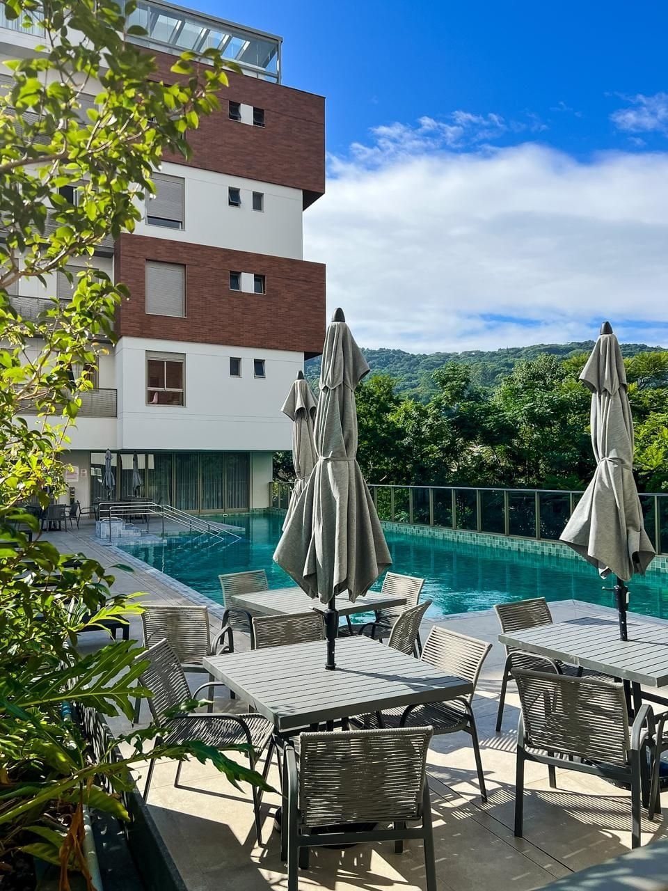 Modern design and an excellent location by the Lagoon! Just 150m from Lagoa da Conceição, this modern studio features a queen bed, Smart TV, air conditioning, equipped kitchen, dining/workspace and Wi-Fi. In the common areas, the building offers a pool and a gourmet rooftop, enhancing the experience. Close to the centrinho, cafés, markets and routes to Joaquina and Mole beaches. Secure your stay and enjoy an exclusive experience!