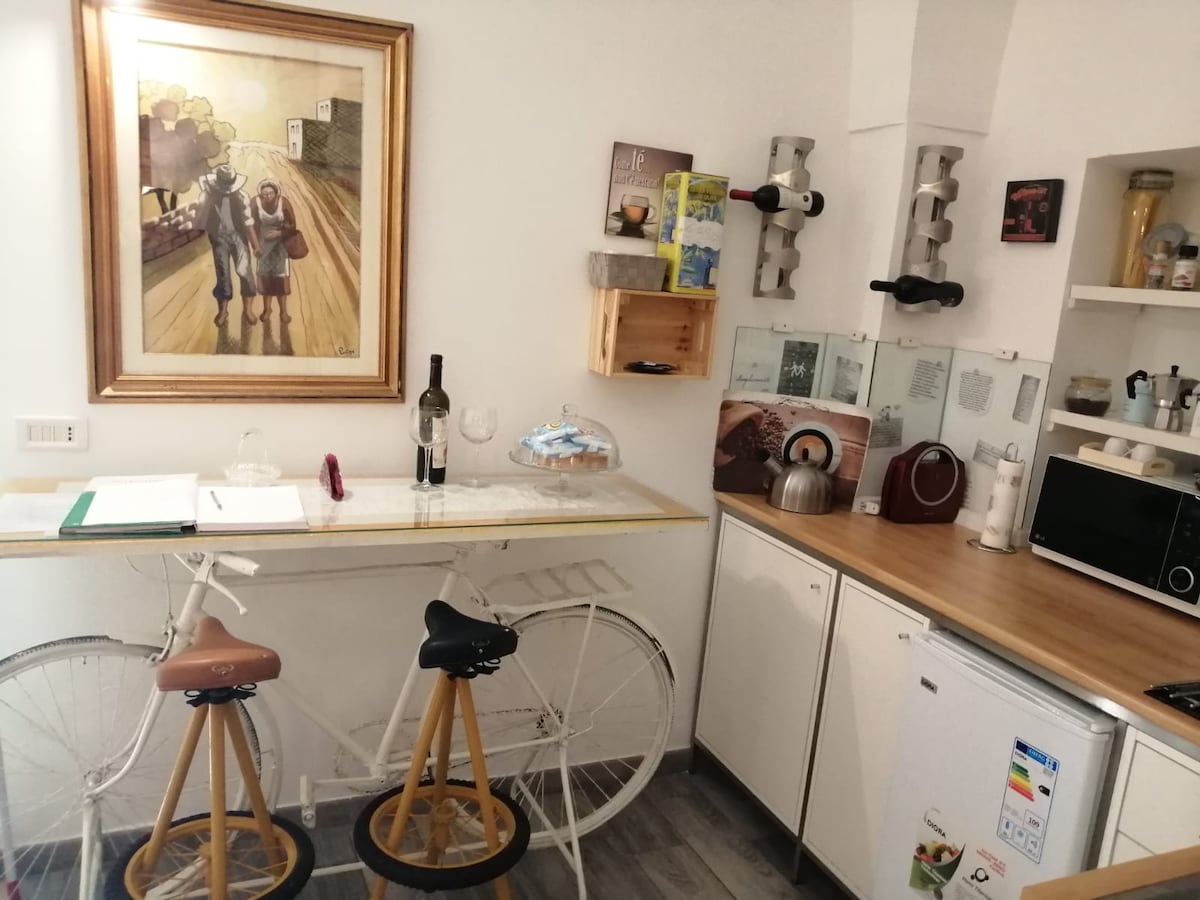 L'appartamento è in una palazzina storica in posizione perfetta nel cuore del Borgo Antico, a pochi passi dalla splendida spiaggia di Cala Sant'Andrea e dal porto turistico e di pesca. Bari città e il suo aeroporto, Trani, Castel del Monte, la Murgia e tanti altri luoghi turistici sono a pochi minuti di macchina. La casa affaccia su un giardino, in una corte molto silenziosa. Le vie dello shopping, alimentari, botteghe, negozietti di prodotti freschi sono a pochi passi da casa.