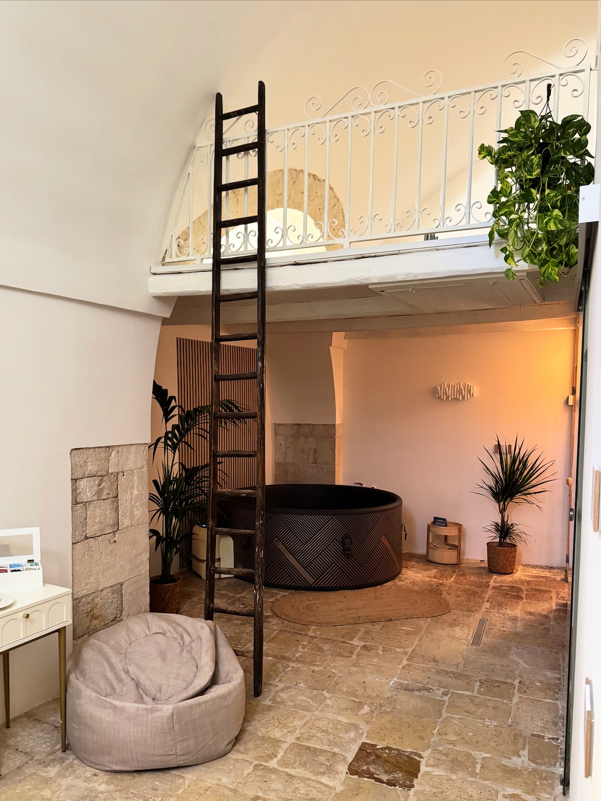 Apt 1 DIVINA indulge in luxury at Palazzo di Lumi Palazzo di Lumi offers 10 apartments and can accommodate up to 20+ guests. Stylishly interior designed and sustainably renovated, each with kitchen, access to SPA with sauna and a pool. Free access to rooftop terrace, and laundry room. Ideal for couples and groups. Perfectly located near Puglia's famous towns, 15 minutes from beaches, 20-25 minutes from Polignano a Mare and Monopoli, and just 30 minutes from Bari airport.