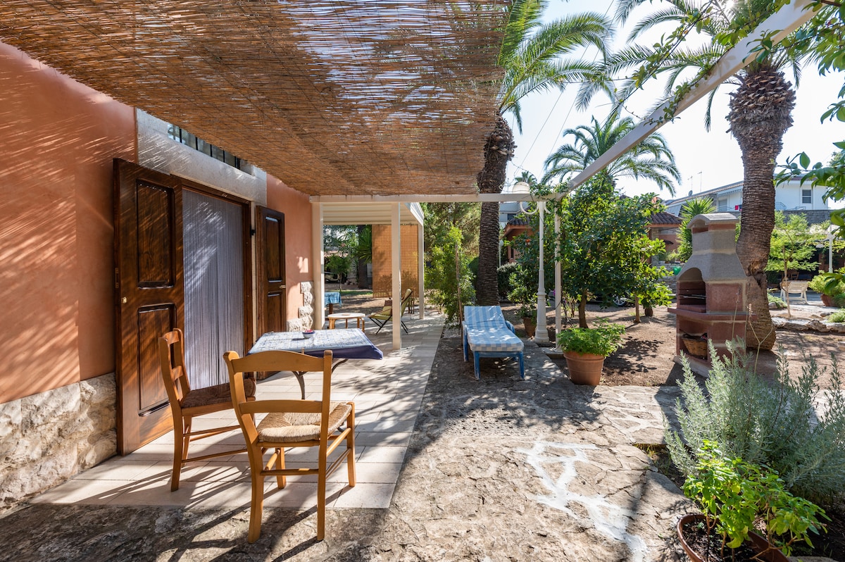 Casetta monolocale in pineta secolare, fronte mare, con veranda e ampio giardino. Internamente oltre ai servizi , angolo cottura, climatizzatore, caminetto, TV abbiamo a disposizione due biciclette e una canoa biposto, tavolo da Ping-pong , calcio balilla . Adatto per single o coppie con bambino di massimo quattro anni , perché il lettino è da campeggio. Nel giardino comune ci sono quattro gatti quindi dovendo prenotare con altri animali domestici bisogna che questi ultimi tollerino i gatti.