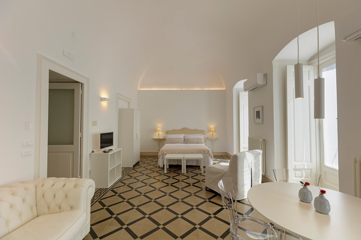 Romantic, small and comfortable this "unique" accommodation entirely in local white stone. Ideal for two people. French double bed and memory pillows. Kitchenette with complete crockery. Air conditioning and heat pump. Bathroom with stone shower. Free Wifi. Nespresso coffee machine with pods and kettle with tea and bottle of water. Located in the historic center, a stone's throw from the sea and the city center.