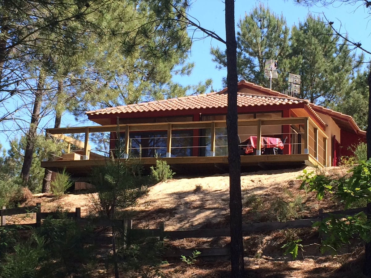 Between ocean and forest: welcome to Villa Leontine. An exceptional location, peaceful with a view of the rejuvenating forest. Just 5 minutes from the beach by car or 10 minutes by bike (8 adult bikes and 2 children's bikes included in the rental), the ocean is on your doorstep. Swimming pool, volleyball court, large outdoor sofas, plancha grill – everything you need to enjoy outdoor living. Inside, all the necessary comforts are also provided: 5 bedrooms, 2 bathrooms, 1 shower room, A/C...