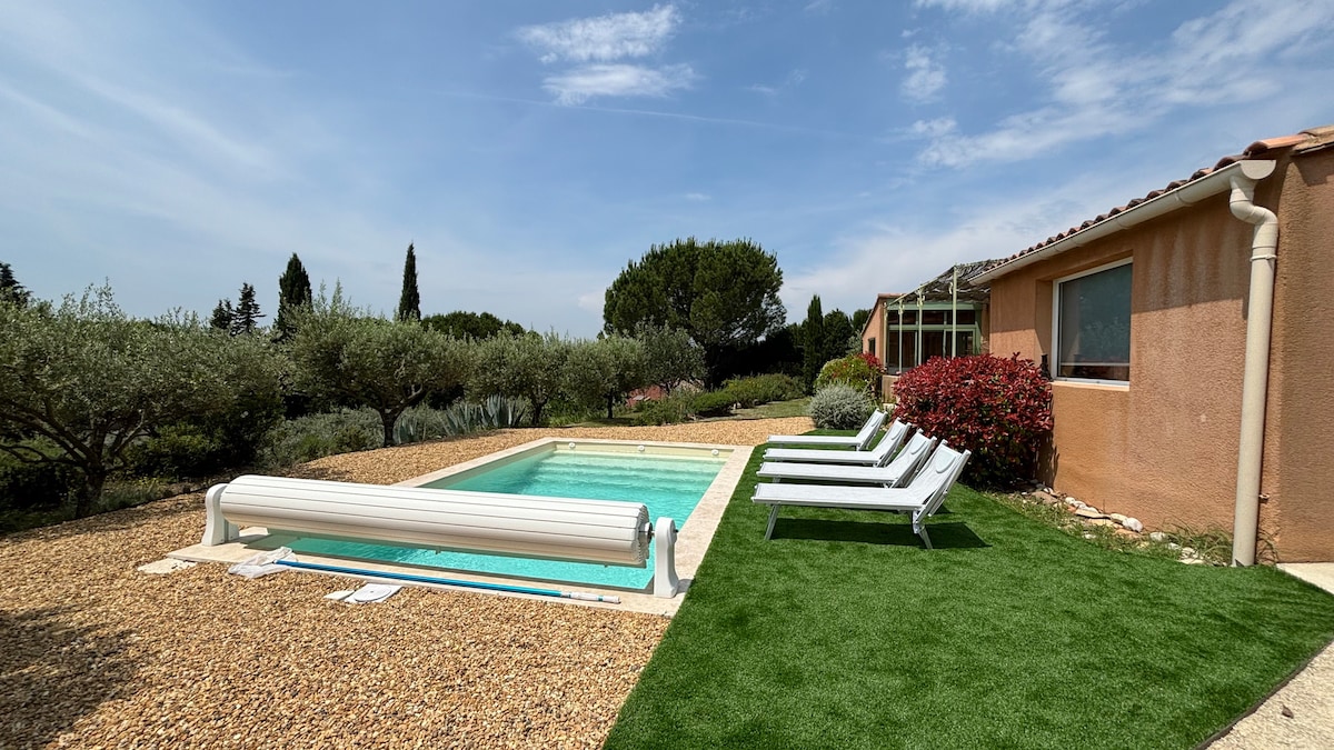 Sur un terrain de 20 000 m2, semé en prairie, tout juste aménagé : une grande allée de cyprès, oliviers et lavandes vous amène à cette ancienne ferme située en pleine campagne, entièrement rénovée, avec piscine de 8 x 4, et ses espaces extérieurs. La maison de 115 m2, pour 6 personnes, est composée de 3 chambres avec lits en 160, 2 salles d'eau, une cuisine ouverte sur un salon séjour, 2 wc, une buanderie, le tout entièrement neuf ! La maison est climatisée (gainable)