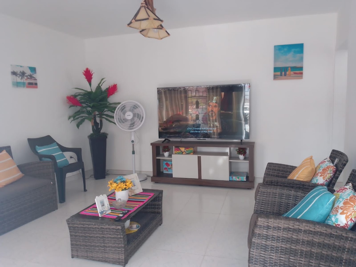 Acogedora casa playa con Vista al mar a 1 cuadra de la playa (frente a la primera y segunda playa) totalmente iluminada. Zona tranquila. La casa esta totalmente equipada lista para que vengas y disfrutes de una cómoda estadia