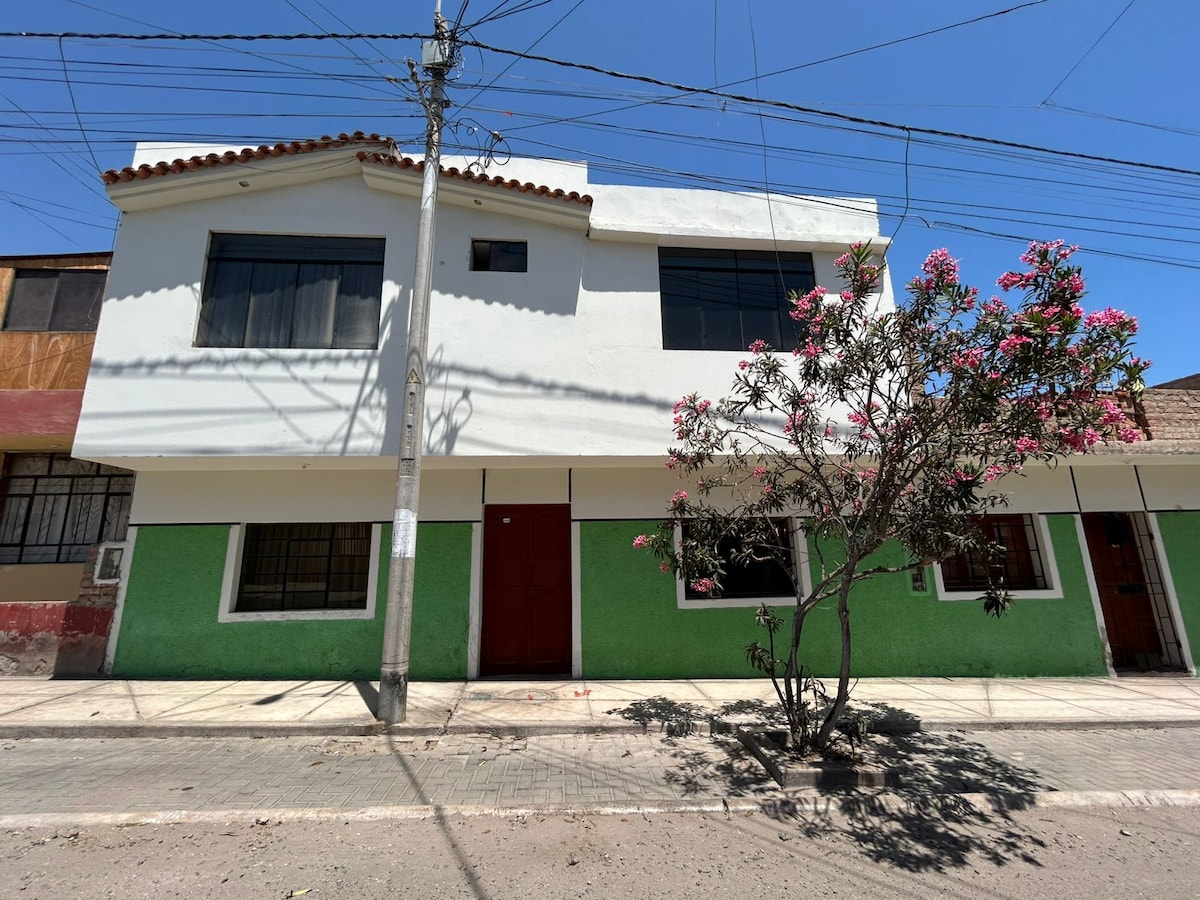 Disfruta del verano en una casa acogedora y equipada en una zona tranquila. Está a solo 5 minutos de la playa, centro, mercado y plaza (EN AUTO) -Sala y comedor para 06 personas, tv con cable, WIFI -02 habitaciones amplias en cada una de ellas hay 02 camas, armario, cómoda y planchador. -Área de cocina equipada con electrodomésticos (licuadora, refrigerador, arrocera, waflera) -Lavadora -Patio amplio con parrilla -Baño con ducha (agua caliente) -Tanque elevado