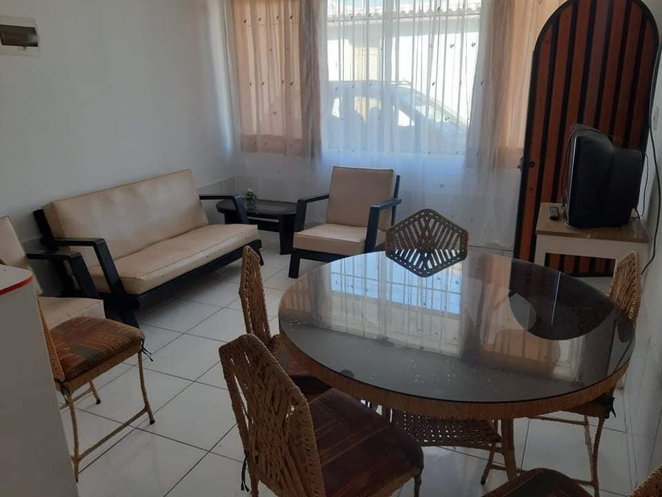 Moderno departamento AMOBLADO Ubicado a sólo 5 minutos (EN AUTO) del centro de Mollendo (plaza, mercado, etc.) y 7 minutos (EN AUTO) de la caleta Catarindo - Cuenta con 01 habitación amplia con DOS CAMAS de 02 plazas, TV de 40¨ y baño completo con ducha y agua caliente las 24 horas - Área de cocina equipada con electrodomésticos, mesa de comedor y pequeña sala de estar con ½ baño, sofá y TV de 40¨ INCLUYE: Agua potable, luz, WiFi, uso de COCHERA y terraza compartida