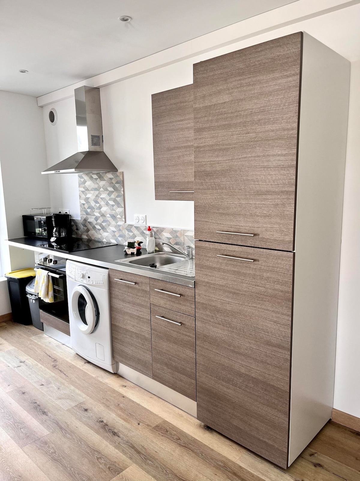 Amiens quartier Anglais, proche gare quartier historique, boulangerie, arrêts de bus, carrefour market Stationnement gratuit dans le rue Agréable studio de 20m2 cuisine ouverte avec frigo plaque de cuisson micro ondes hotte ustensiles de cuisine... la salle d'eau est composé d'une douche hydromassante d'un meuble vasque et d'un WC Les draps, serviettes, Papier wc sont fournis TV et Wifi compris Venez poser vos valises le logement est très lumineux