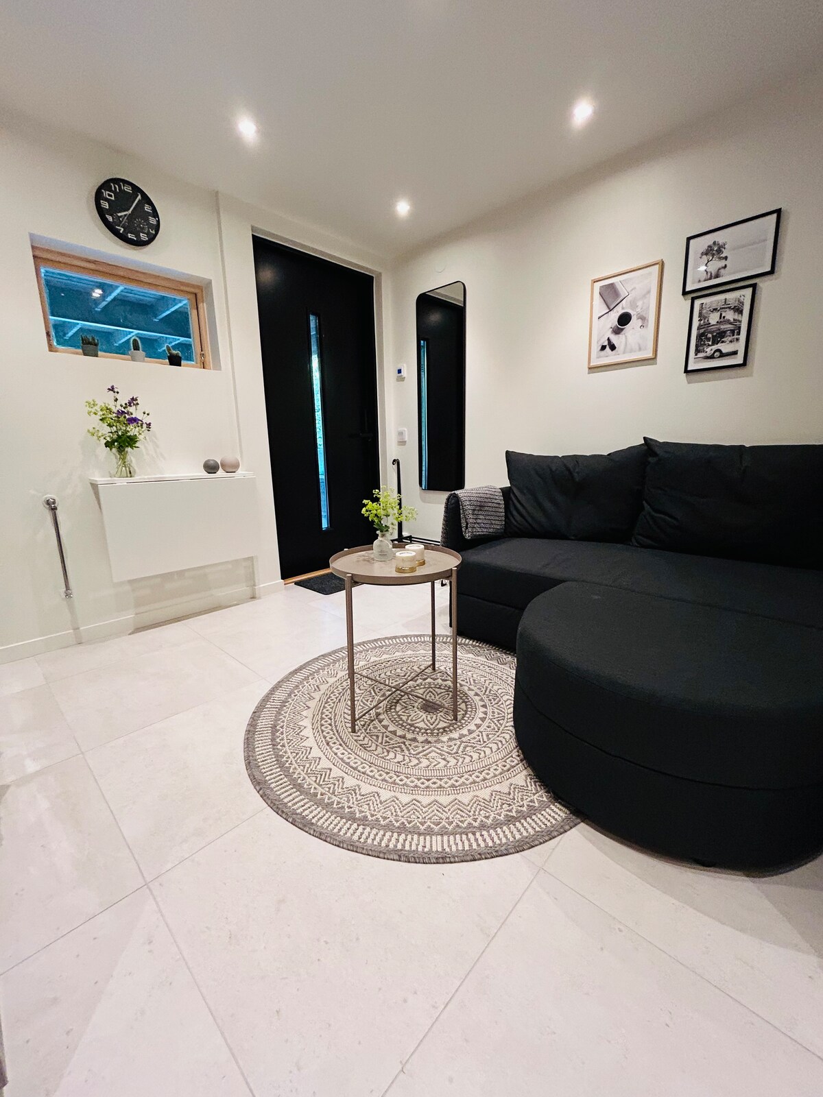 One bedroom apt (35 sqm) in a villa, with a separate entrance. Kitchen with stove, oven, microwave, fridge and freezer. Double bed (160cm) and a sofa bed suitable for 2 kids or smaller adults. Bathroom with shower, toilet and washing machine. - Lake nearby - Playground and football field in the area - Biking distance to the ocean - 5 min walking to closest bus stop