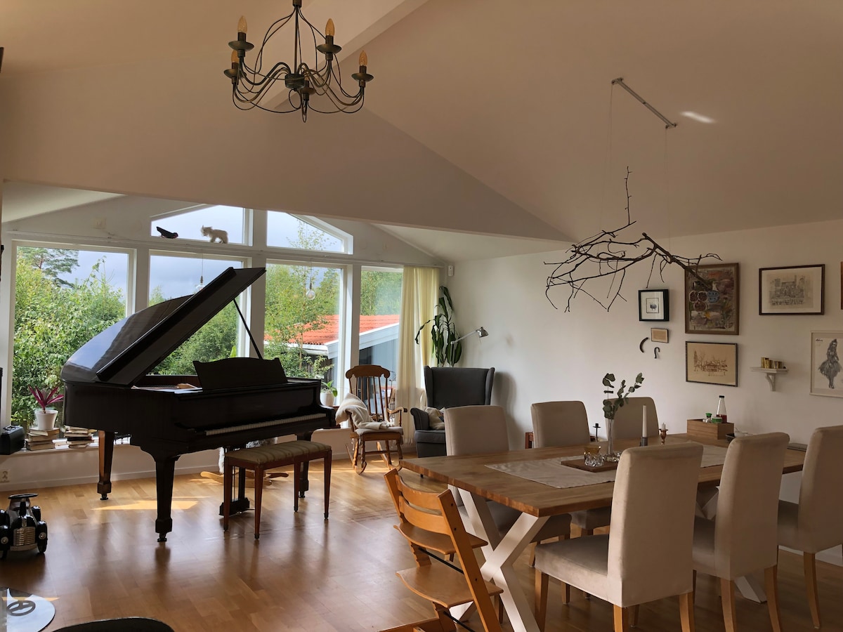 For next summer, pls make a contact. Vores bolig har en fantastisk beliggenhed med udsigt ud over søen. Huset (139 m2) ligger ved søen Ømmern, 50 km fra Gøteborg. Huset, som er placeret på egen halvø (3,5 hektar), ligger isoleret forenden og har sol fra morgen til aften. Fra terrassen går du direkte ud i søen med egen sandstrand og bådebro. Ud over hovedhuset med stor stue m/ pejs, køkken, 4 soveværelser (8 p), findes der et enkelt anneks med plads til 4 extra på sommeren (kan ej opvarmes).