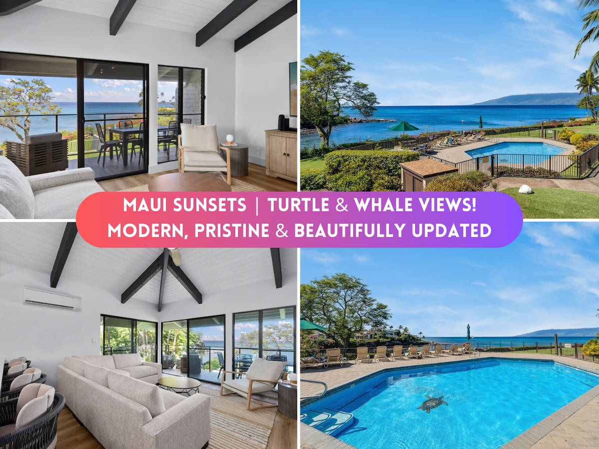 We are a LEGAL Short Term Rental. If STRs are banned, we will refund your reservation money. We are 6 miles north of the fire. Our beaches, sunsets & ocean are still amazing. Remodeled Large Studio w/ AC. Sleep 30' from the ocean to the sound of waves! PANORAMIC VIEWS/SUNSETS! 2 Relaxing Oceanside POOLS & hot tub. Fully-equipped kitchen. Walk-in rain shower. GREAT LOCATION! Close to Kaanapali, Kapalua, groceries, restaurants, beaches. TURTLES love this area. Free Parking. No Resort Fees.