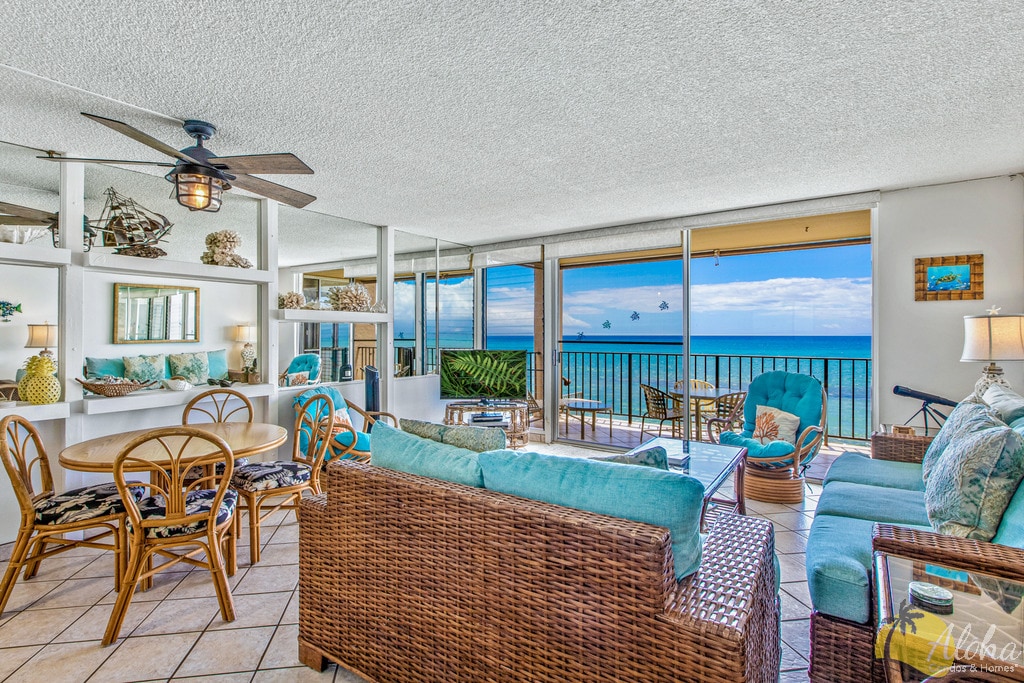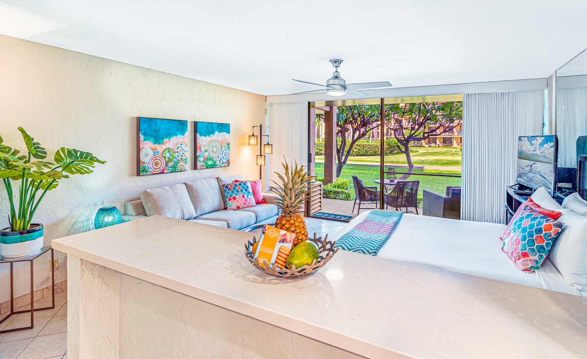 Maui is outdoor living at its finest! There is no escaping the view. This condo does not border a noisy parking lot nor street - The view from this condo makes the ocean look like it's your swimming pool, its spectacular! You can see the ocean while sitting on our tropical couch or cooking dinner in the kitchen! If you love the ocean, this is it! We have a first class fully remodeled condo with a full-size fridge, double ovens, microwave and granite countertops.