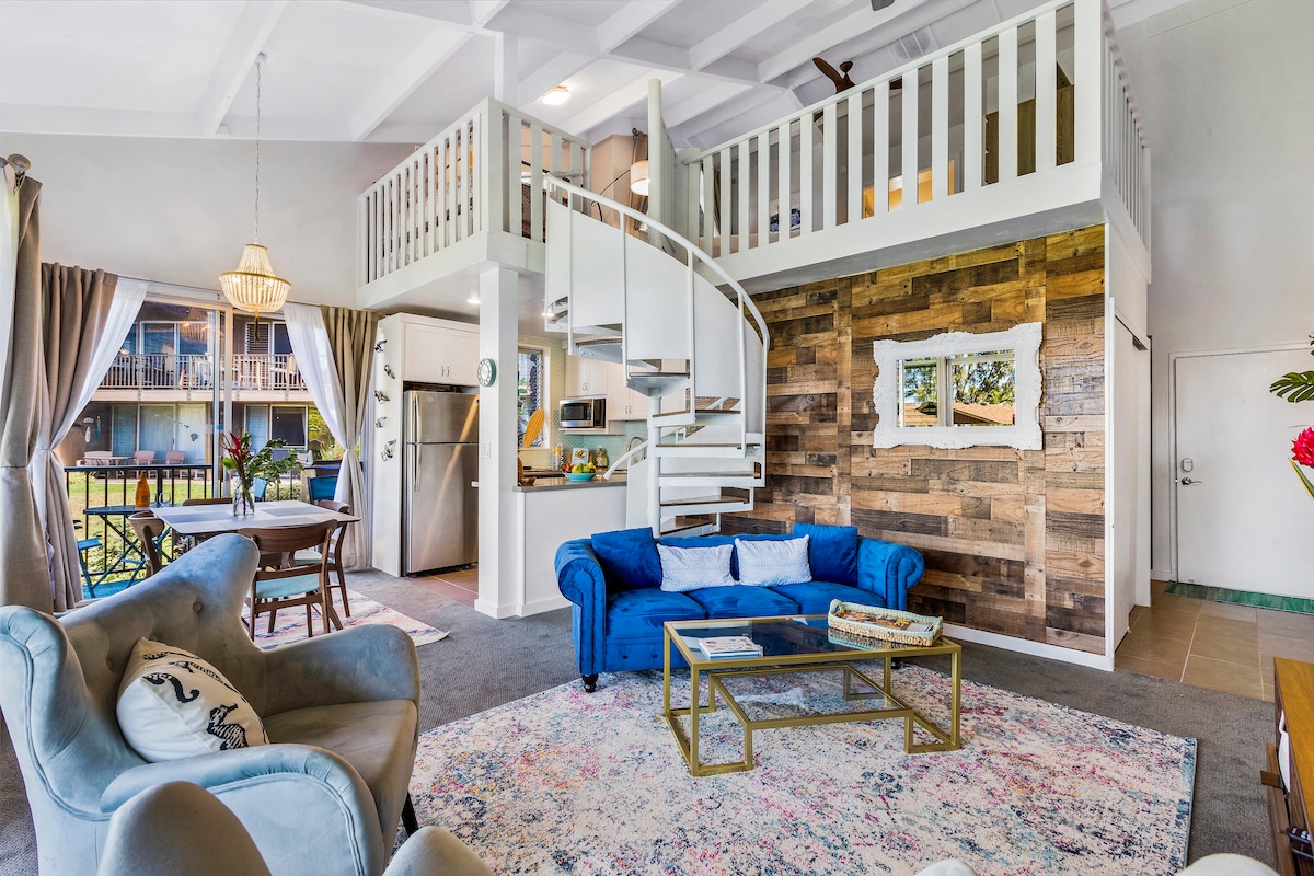 Kepuhi Beach Resort. Newly remodeled extra large 565 sq. ft. condo with breathtaking sunset and ocean views from the lanai. Master bedroom with a queen bed and full bath on main floor. Open bedroom with full bed, and 1/2 bath in the loft. • Fully supplied with all kitchen appliances, utensils, food storage containers, etc. • Fast WI-FI for working vacationers. • Office space niche • Large flat screen smart TV, clothes washer and dryer FREE CAR TO USE WHILE STAYING AT THE CONDO.