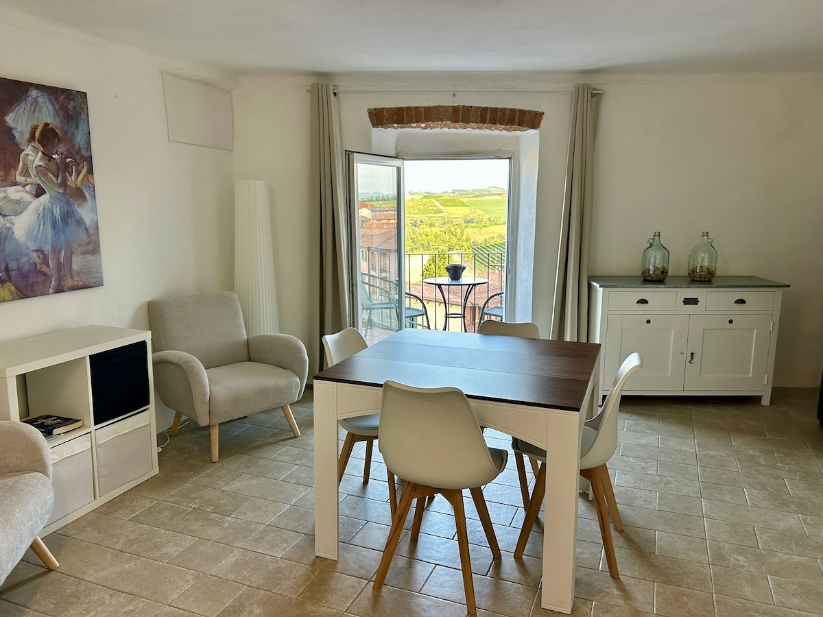 An apartment in a newly renovated 17th century house with views of the castle of Serralunga d'Alba and the surrounding vineyards, which you can enjoy from any room or from the small balcony that belongs to the apartment. Suitable for a romantic stay (no other guests in the neighborhood), wine tasting trip (famous Barolo vineyards and wineries are all around) or a family stay, making use of the fully equipped kitchen.