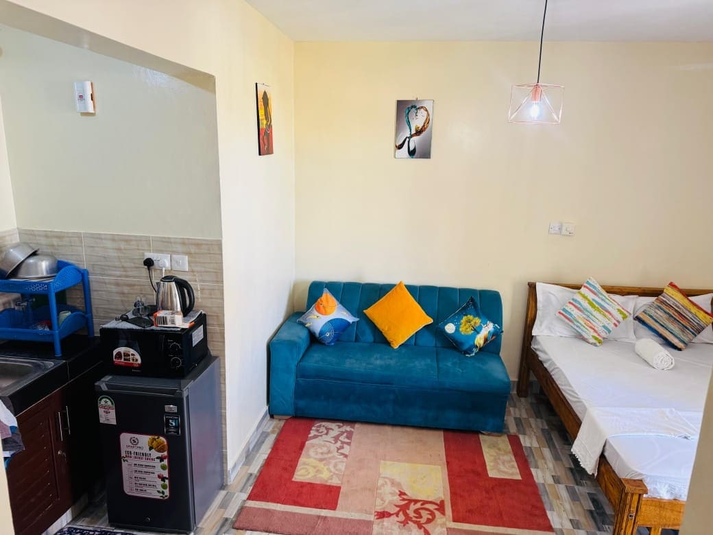 Welcome to your cozy home away from home with easy access to the beach, restaurants, and Nyali’s top attractions, including hotels like Voyager and Bahari Beach. Nestled in a quiet, secure neighborhood, the apartment offers a peaceful atmosphere perfect for relaxing or evening strolls. Great for work trips or getaways calm and convenient. Solo travelers and couples welcome. AC and fans in all rooms; power topped up for moderate use, with extra AC usage requiring a small top-up.
