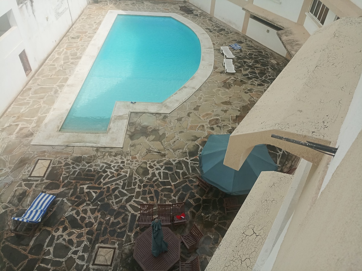 Where luxury meets the ocean! Just 5 minutes to the beaches, this all-ensuite apartment offers resort elegance with home comfort. Walking distance to beach & top malls Rooftop infinity pool & entertainment lounge. Fully-equipped gym High-speed WiFi Weekly housekeeping 24/7 secure access Perfect for couples & families (max 4). Enjoy Uber/Glovo delivery, walk to City Mall, and unwind in paradise. Resort-style amenities, homey privacy. Book your Nyali escape now!