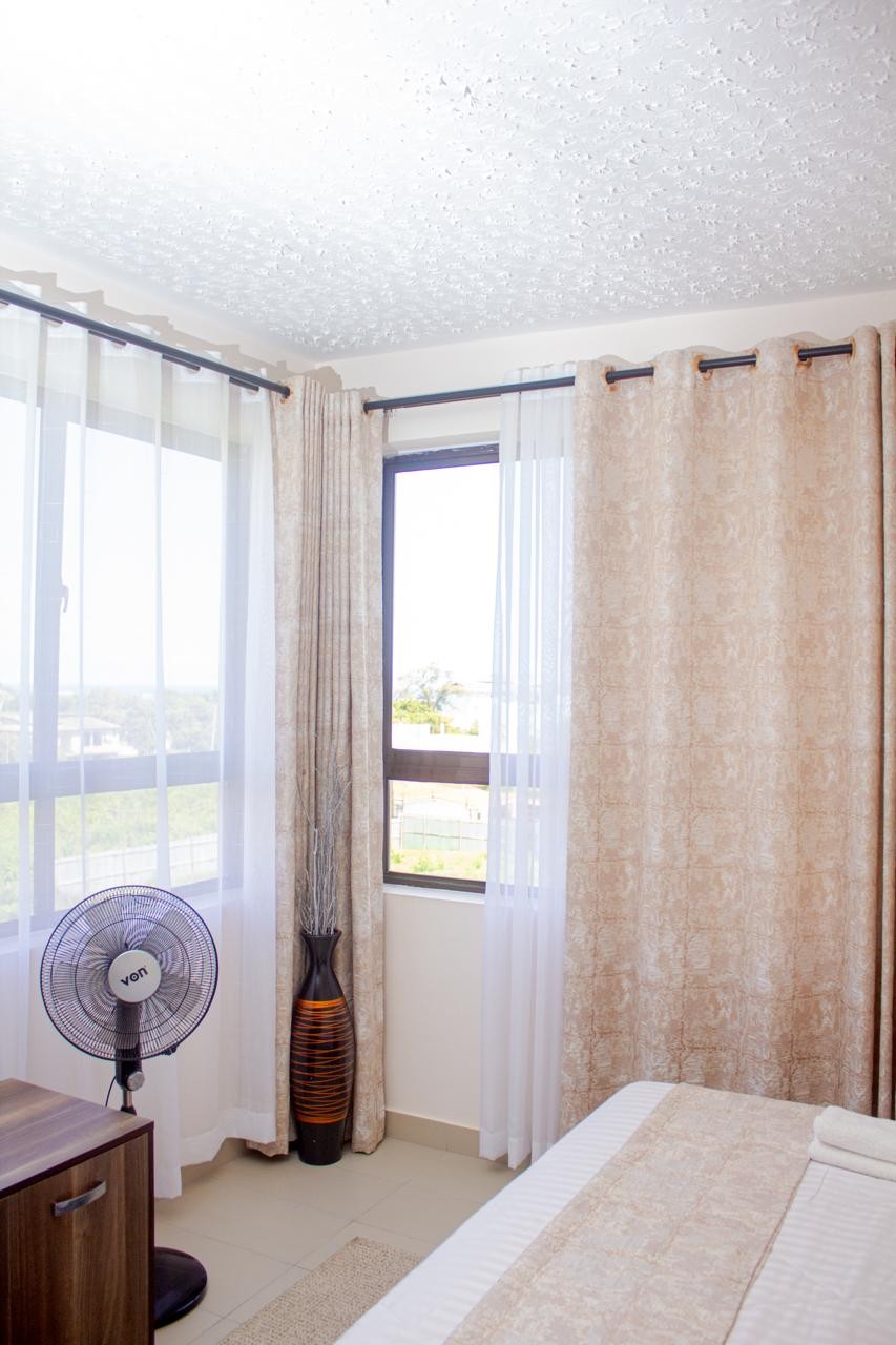 Ideal for short-term stays in the coastal city of Mombasa, Kenya 🇰🇪 The Studio apartment is designed to offer utmost serenity. You can catch a glimpse of the distant sea line through the window with a better view at the roof top. Whether on holiday or work trip or both, its conveniently located and easily accessible with ample parking. The apartment is near Kenya's 🇰🇪 premium beach hotels 🏨 in Shanzu area. Its a walking distance (500meters) to the beach ⛱️ and the blue-sky ocean 🌊
