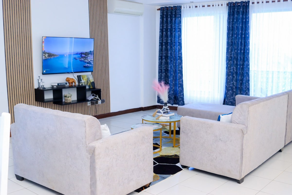 Discover the perfect coastal escape in this modern 1-bedroom beachfront apartment in Nyali ideal for couples, solo travelers, or remote workers. Enjoy direct beach access, a shared pool, lush gardens, a reception,a gym ,ample parking and 24/7 security in a quiet, gated complex. The stylish space features a king-size bed, air conditioning, 55" Smart TV, a fully equipped kitchen, and a cozy lounge with a 77" OLED TV. Located right next to a popular water park and just minutes from City Mall.