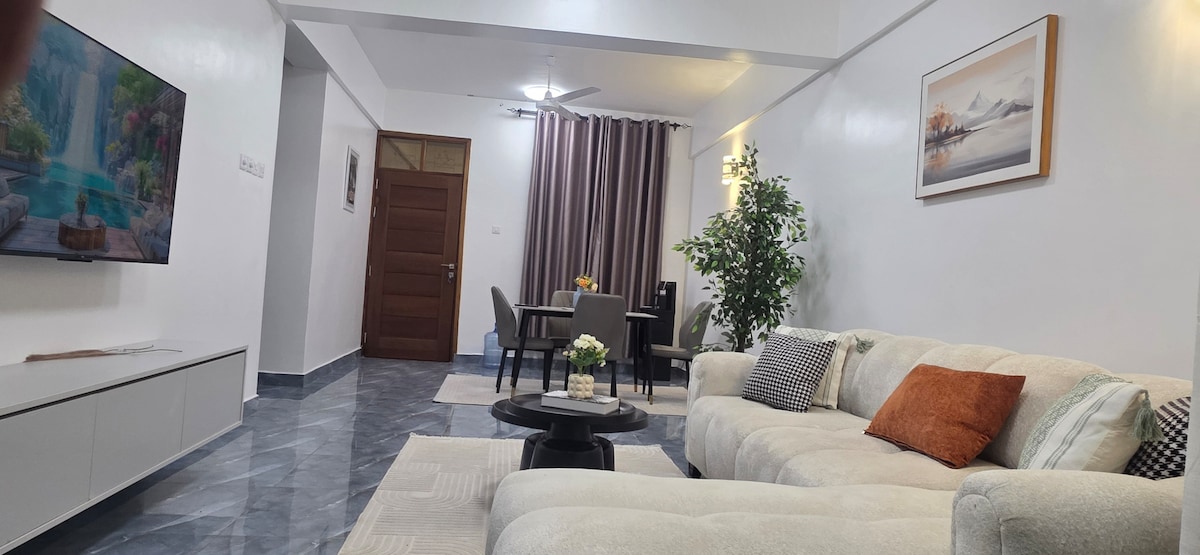 Our fully furnished 2-bedroom offers the perfect blend of comfort, convenience, and seaside charm • Spacious living room with elegant décor • Fully equipped modern kitchen • 2 cozy bedrooms with ample storage • Private balcony with fresh ocean breeze • Fast Wi-Fi and smart TV • Air conditioning • Secure parking & 24/7 security • Minutes to Nyali Beach & Mombasa Beach • Close to City Mall & Nyali Centre • Near top restaurants, cafés & nightlife • Easy access to Haller Park & business
