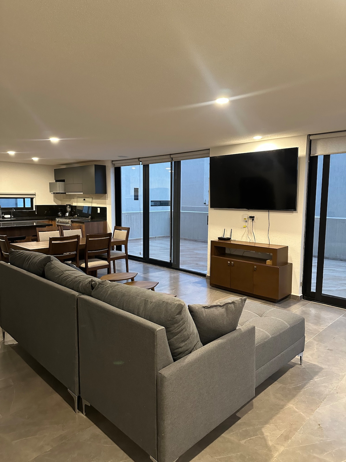 Brand-new, located in the heart of Juriquilla, this 160 m2 apartment offers a one-of-a kind experience, going above and beyond with amenities & entertainment. If you are looking for top quality, look no further and come to the most modern & luxurious apartment in Queretaro for an unforgettable stay Walking distance from Starbucks, Walmart, Bars and top restaurants like Sonora Grill & Hunger, this apartment has it all, comfortable beds, balcony, large 4K TVs and a 100" Home-Cinema from your bed