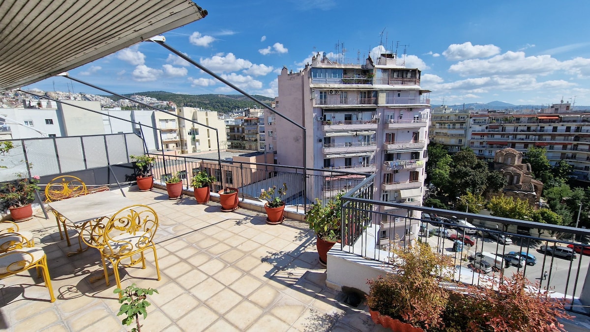 A super central, quiet, sunny top floor (ρετιρέ με ασανσέρ) - (7th floor with elevator) apartment with a large balcony, in Despere (Δεσπεραί) str., inside the historical part of the town. Renovated in August 2017, with stylish furniture and decoration and fully equipped, it guarantees a pleasant and a "home away from home" stay. Ideal for vacation and/or business trips. Spoken languages Greek and English. 3 min walking from the Metro station "Sintrivani" and 2 min walking from various bus stops.