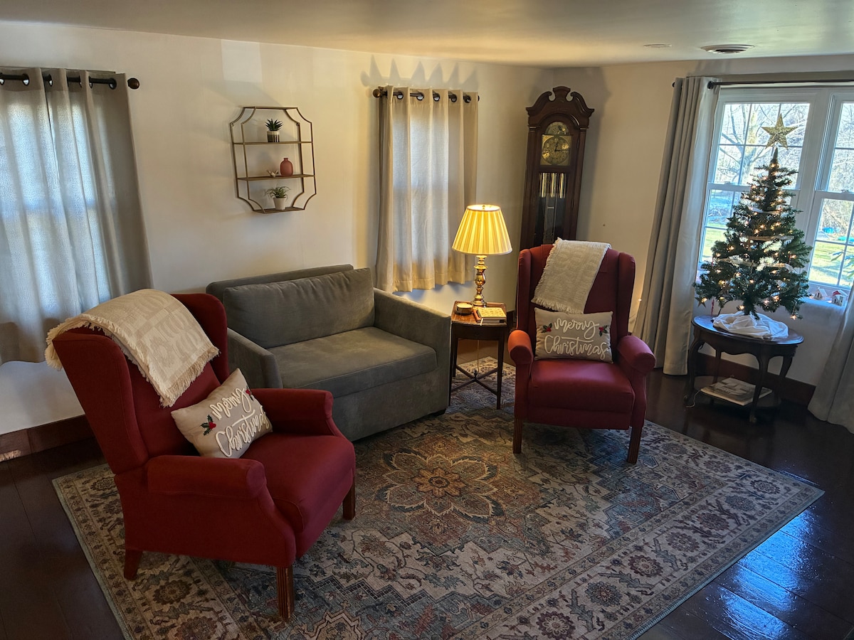 Escape to our charming countryside home, where rustic tranquility meets modern comfort. Enjoy the newly renovated space with three bedrooms, one bathroom, and picturesque views of the woods and farmland. Explore the beauty of the country or relax on the back deck or fire pit. Inside, the open living area and fully equipped kitchen await. Whether it's a peaceful retreat or family adventure, experience rural magic with all the comforts of home. Book now for unforgettable countryside memories.