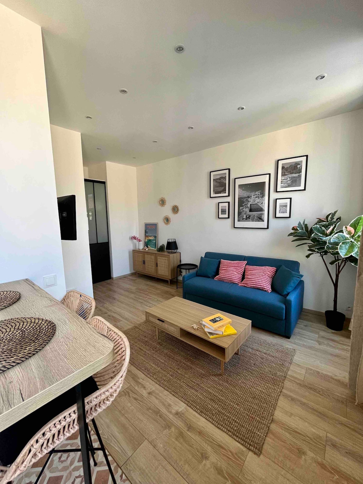 « SEAVIEWS BY JENNI MENTON »présente: Superbe 2 Pièces NEUF en Front de Mer, sur la Promenade du Soleil. 50 m2 de design,large terrasse de 18m2, vue mer comme sur un bateau de tout l'appartement. Conçu pour le confort de 4 personnes. Décoration très recherchée,matériaux et équipements haut de gamme. GARAGE FERMÉ* ASCENSEUR CLIM SMART TV INTERNET ILLIMITÉ HAUT DÉBIT ENCEINTE BLUETOOTH BOSE A quelques minutes à pied de tous les commerces et activités. Bus en bas de la résidence, gare à pied.