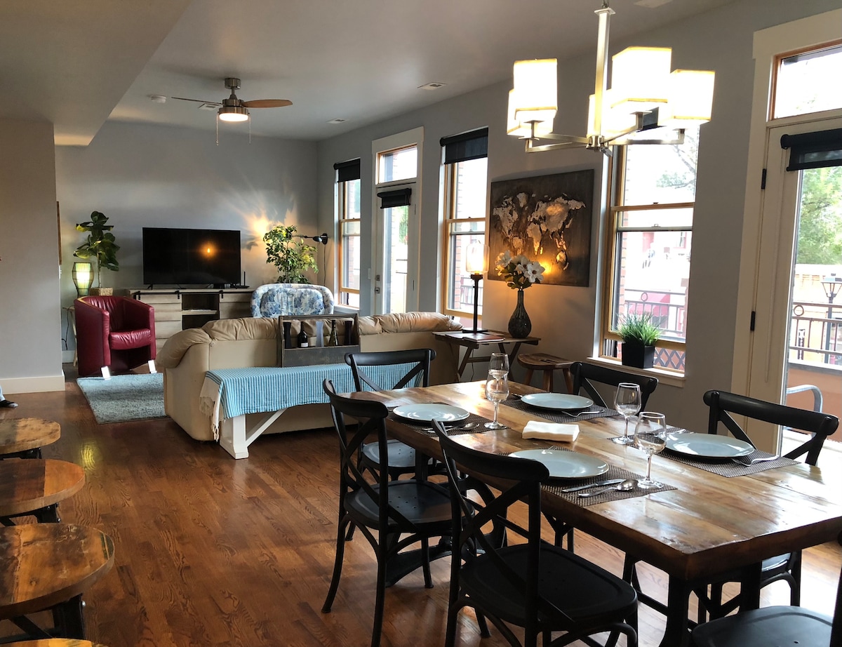 Ground level and PERFECT LOCATION! 2 BR/1 BA fully renovated condo a block from main street, a block to Arkansas River, 3 blocks to South Main. Professionally decorated, 65" TV w surround sound. Beautiful fire pit with mountain views. Leather power recliners. Upscale bedding and memory foam mattresses. Blackout “top down” blinds in all rooms. Soaking tub/shower with glass door. Keurig with pods. Fully equipped kitchen with deluxe cookware and small appliances.