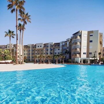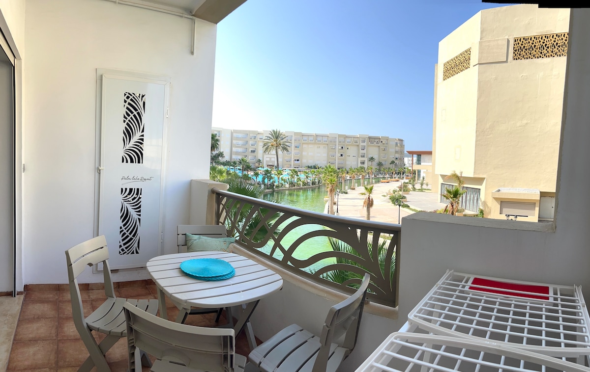 Joliment décoré et bien équipé, au 4è et dernier étage au calme et lumineux dans une résidence sécurisée avec 5 piscines et jeux aquatiques sous les yeux attentifs du staff de sécurité et des maîtres-nageurs. Lit double + canapé-lit + clim + tout le nécessaire pour cuisiner + WIFI Boisson et fruits à votre arrivée stationnement extérieur. Belle plage à proximité Possibilité de location de voiture Lire le règlement intérieur +++ Prenez-en soin and ENJOY