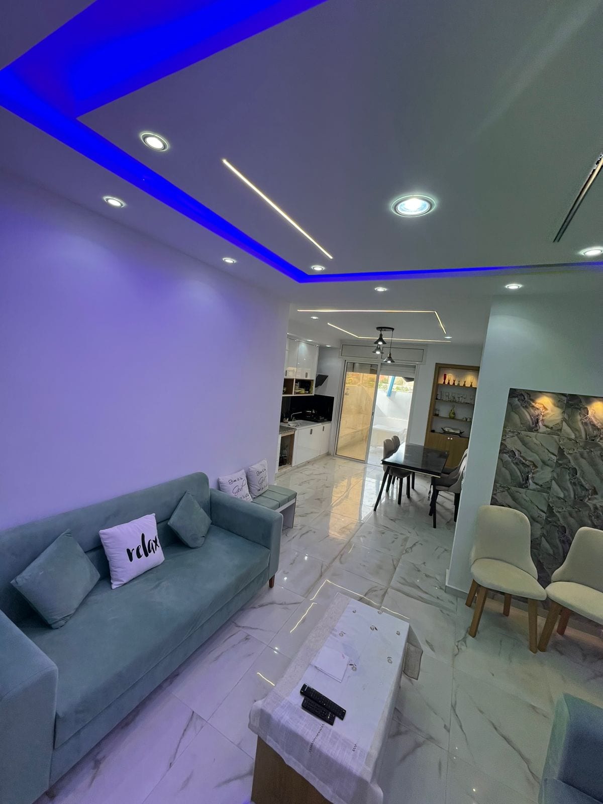 Un appartement avec une merveilleuse vue et autour un couché de soleil magique, une salon cosy, donne une sentiment de confort et luxe au même temps Avec une tres bonne énergie Pied sur l’eau, plage monastir skanes, un quartier propre près de tous vos besoins