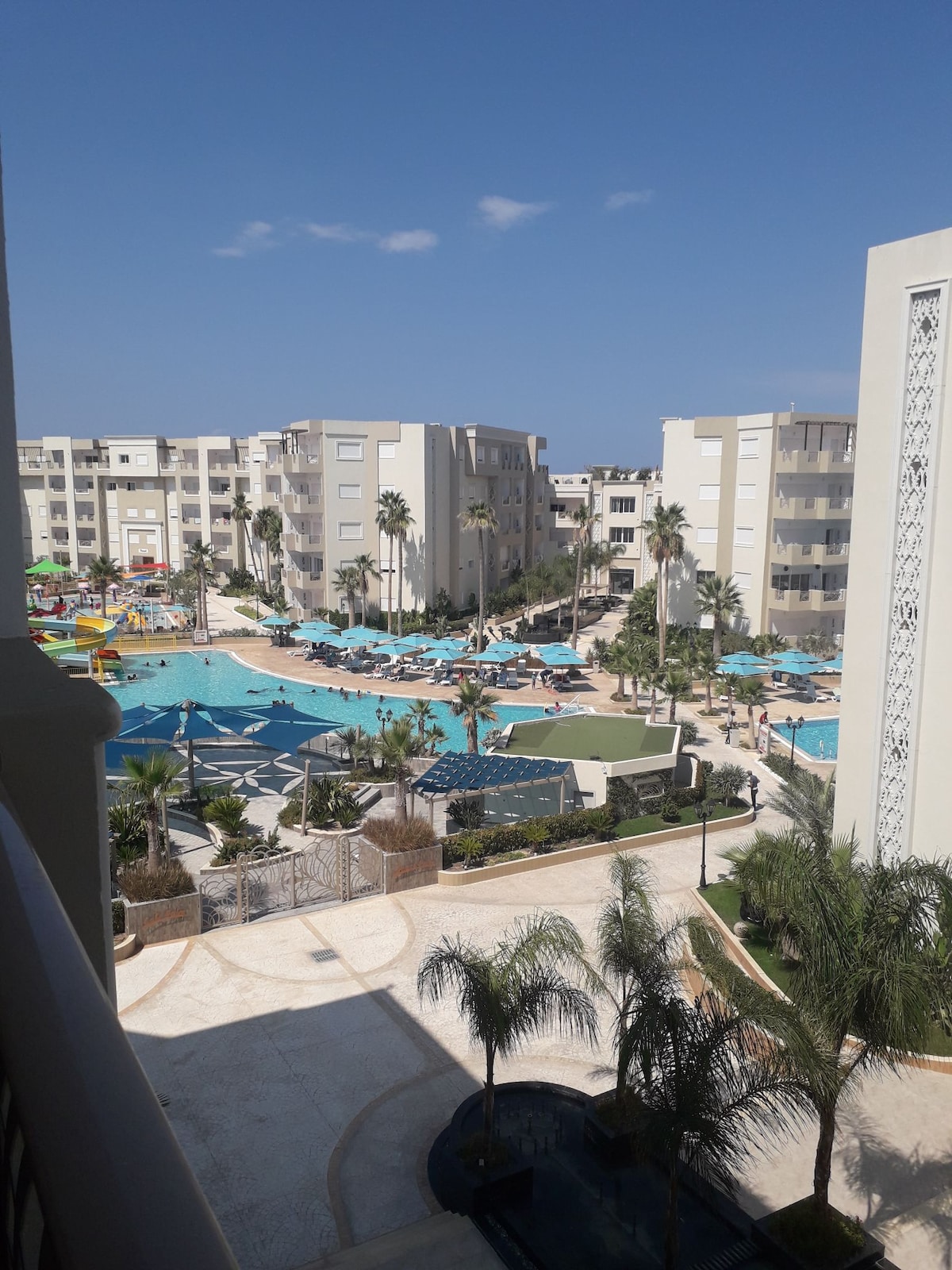 Appartement Luxueux avec 3 Chambres dont une suite parentale, Piscine, Balcon Cascade ,Accès Plage Privée et un parc aquatique avec toboggans GRATUIT. Détendez-vous sur le grand balcon équipé d’une cascade d’ambiance, un véritable coin de paradis pour vos instants de repos ou vos repas en plein air. Profitez d’une piscine collective et surtout d’un accès direct à une plage privée et un parc aquatique pour les grands et les petits pour des journées ensoleillées les pieds dans l’eau.