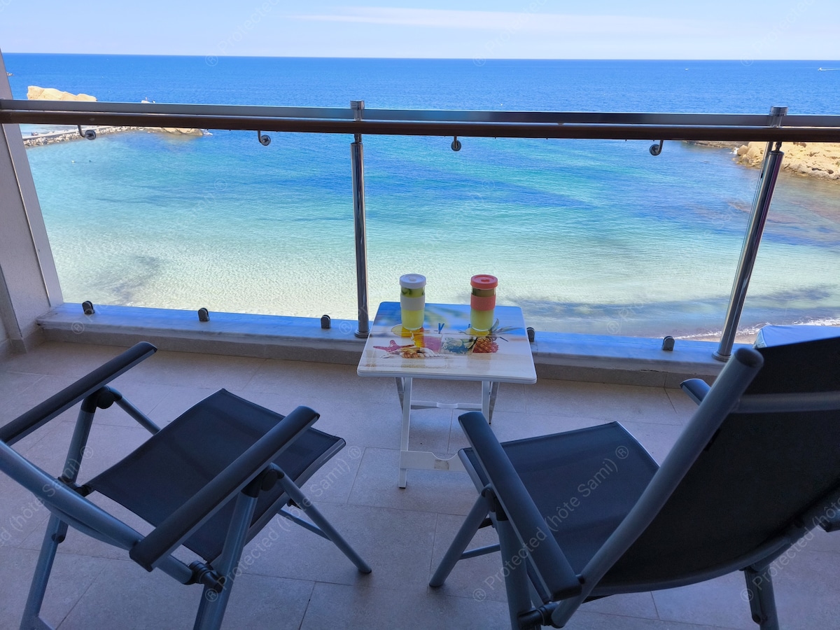 Agréable studio meublé (S+1) de 60m² pour deux personnes avec deux grands terrasses bien ensoleillés dotés d'une pleine vue de mer. La chambre à coucher possède un grand lit (200 cm) pour assurer plus de confort. Quartier très animé a proximité de la plage avec des nombreux magasins, restaurants, bistrots gourmands, café, bars typiques ... à 5 min du centre ville. Nous prenons soin de vous apporter tout le confort : lave linge, séchoir, cuisine entièrement équipée, shampoing, serviettes ..