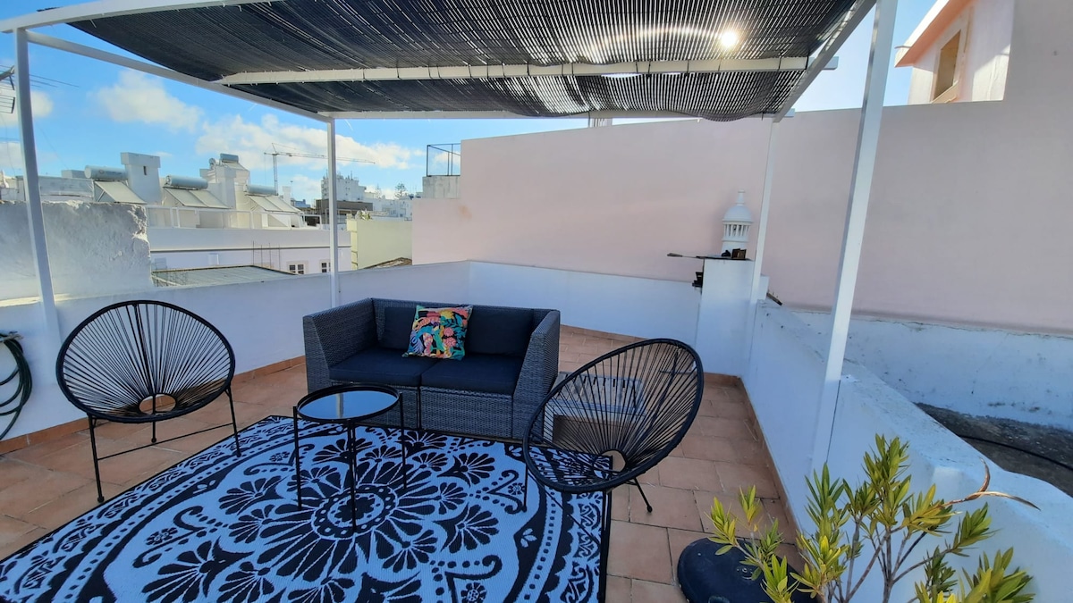 This charming suite, spacious, comfortable and full of natural light, is perfect for couples. Located on the first floor of a pretty traditional townhouse, it is very central, only 5 minutes from the ria, historic centre, restaurants, ferry to the islands (beaches in Olhão are all on the islands) and train station, and has its own private entrance on a picturesque pedestrian alley. On the terraces, with a view over the city, you can prepare and enjoy meals, sunbathe or have a nice cool shower.