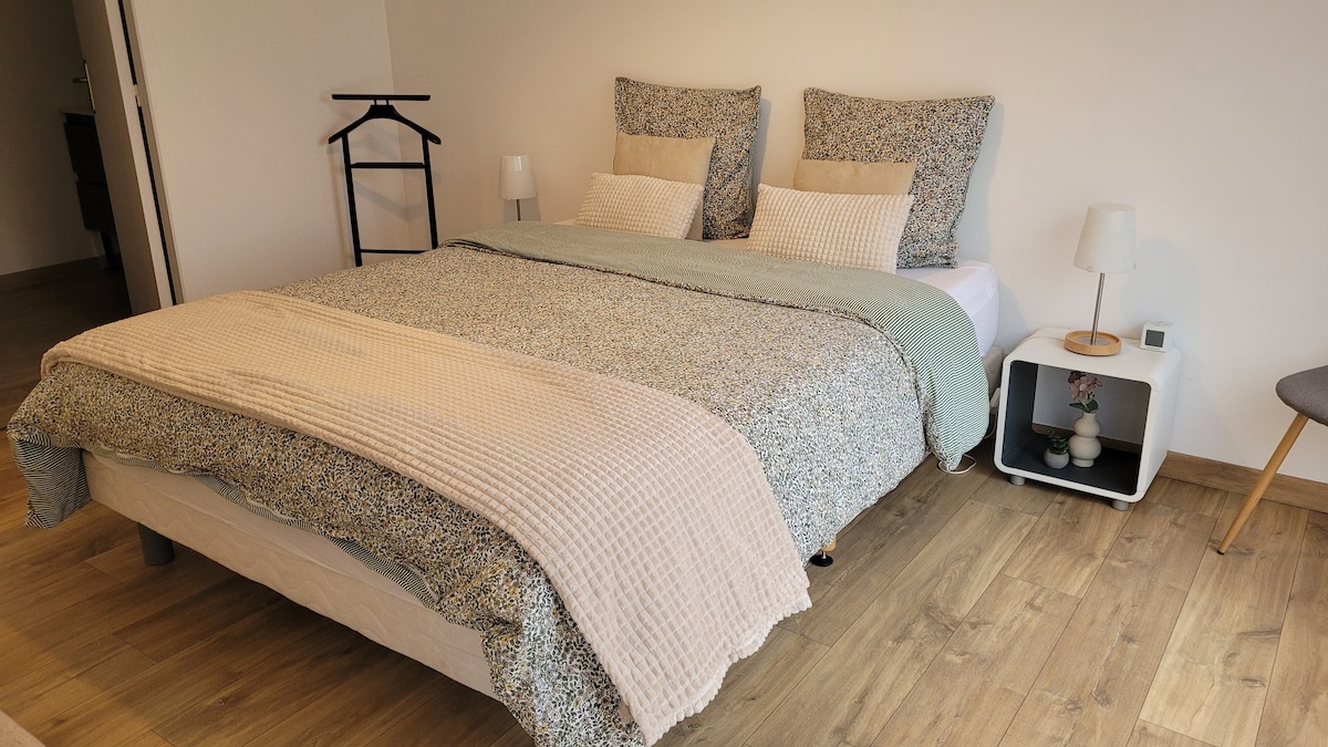 Studio « Ambre » Détendez-vous dans ce logement calme et élégant à la campagne. Studio en RDC dans un corps de ferme rénové. Petit coin terrasse et accès au jardin. 7 min en voiture de l'accès rocade ou du centre-ville. Grand parking juste devant la maison. Climatisation réversible. Lit confortable en 160 SDB séparée avec une douche spacieuse. Smart TV Cafetière Senséo. Pour votre sécurité la terrasse commune, le parking ainsi que le jardin sont sous vidéo surveillance. Pas de frais de ménage
