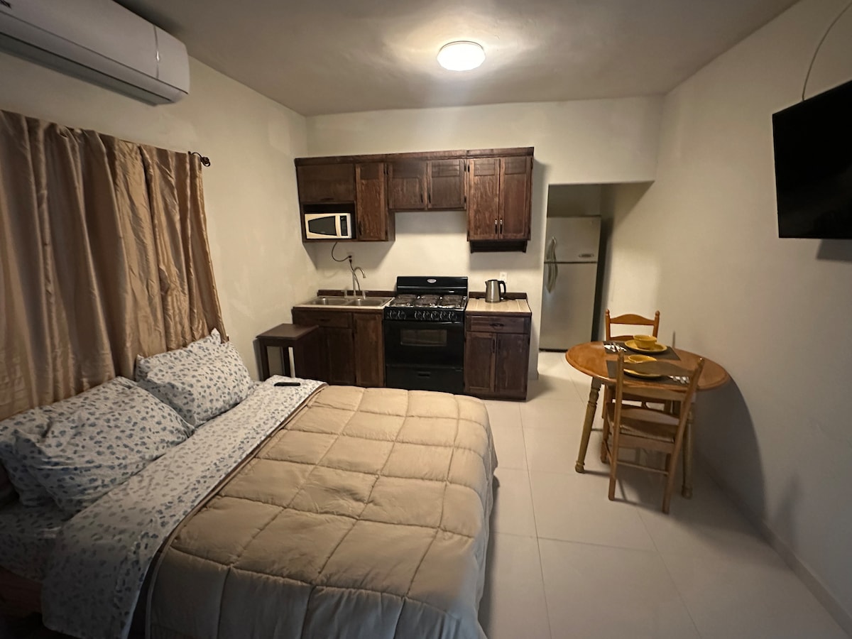 Departamento pequeño para dos personas máximo cama matrimonial baño privado y pequeña cocineta cuenta con Minisplit . una smart tv e internet .ubicado entre Blvd Juarez y Blvd ejercito mexicano y pape en col Picasso FACTURAMOS. si gustas en estancias de tres o más días puedes pedir que entren a limpiar la habitación con un cargo adicional - espacio para NO FUMADORES- el depa da a la calle , puede haber algo de ruido , la entrada es a partir de las 4 y salida 12 checa instrucciones de llegada
