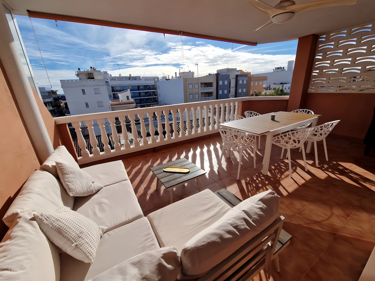 Fabuloso apartamento en primera línea de playa. Conocida como “La Pequeña Venecia”. Maravillosas vistas al mar y a sólo 4 km de Valencia Ciudad. Totalmente equipado, 68mt2., 2 habitaciones, 2 baños, cocina independiente, salón comedor, wifi, TV, balcón, plaza de garage, ascensor. Aire acondicionado frío/calor en habitación principal y salón comedor. Ventiladores en ambas habitaciones. Frente a supermercado y gran oferta gastronómica. Quédate aquí si quieres estancia soñada e inolvidable!
