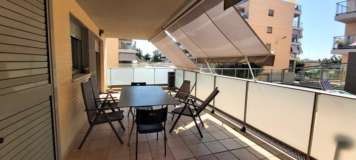 Fully equipped apartment, recently renovated and with brand new furniture. It is located two minutes walk from the beach. Ideal for a couple or a small family (2 to 4 people) who want a cozy and private apartment, with a swimming pool, playground and private parking. A double bed and a comfortable double sofa bed are available. The apartment has a large balcony with views of the sea, the pool and the mountains. The residential area is quiet and beautiful.