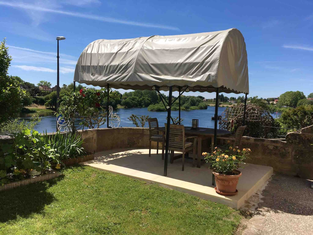Charming loft/duplex (120 m2) in an old renovated farmhouse in the heart of Périgord-Dordogne. Settled on the top of a quite hill, surrounded by 10 ha with orchard, vegetable garden, meadows and woods overlooking the valley and village. Private outdoor areas. Wood heating. Saltwater overflow swimming pool (70 m2). High band internet. 30mn/Bergerac vineyards, 1hour/prehistoric sites (Lascaux). Easy access (10mn/highway, 1h/Bordeaux airport). Artist studio on request. Winter long term welcomed.